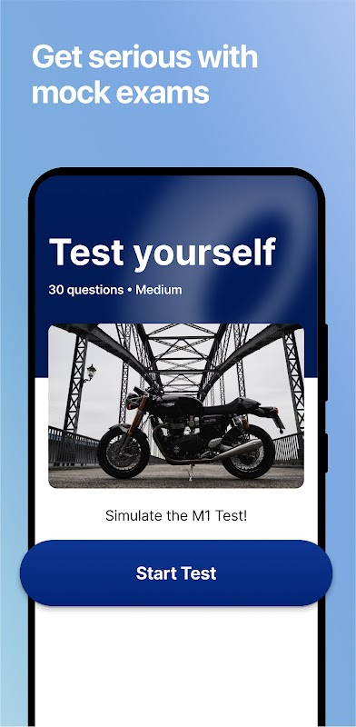 所有内容均基于 MTO 摩托车手册,确保您的练习与真正的 M1 测试相符。