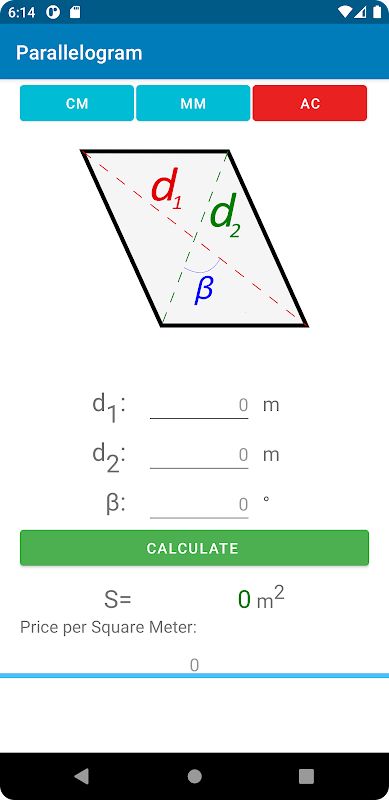 用于计算平方米以及计算给定面积的总价格的应用程序。