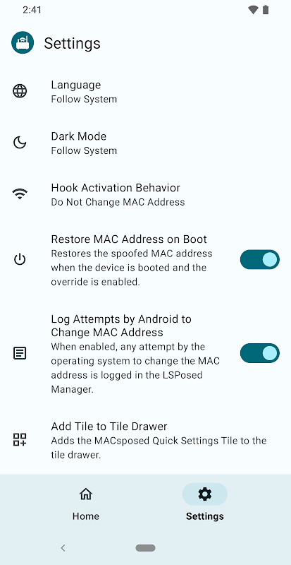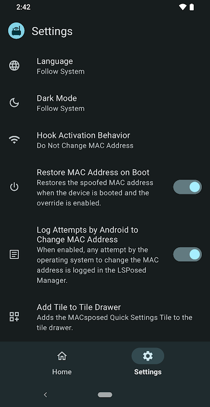 ⚠️ 警告:MACspose 适用于运行 Android 12 至 15 的已 root 设备,并且需要 Xposed。所需使用的 Xpose 变体是 LSPod。其他 Xpose 变体将无法工作。此外,不能保证该模块适用于所有设备。在最坏的情况下,它可能会导致引导循环。使用风险自负。