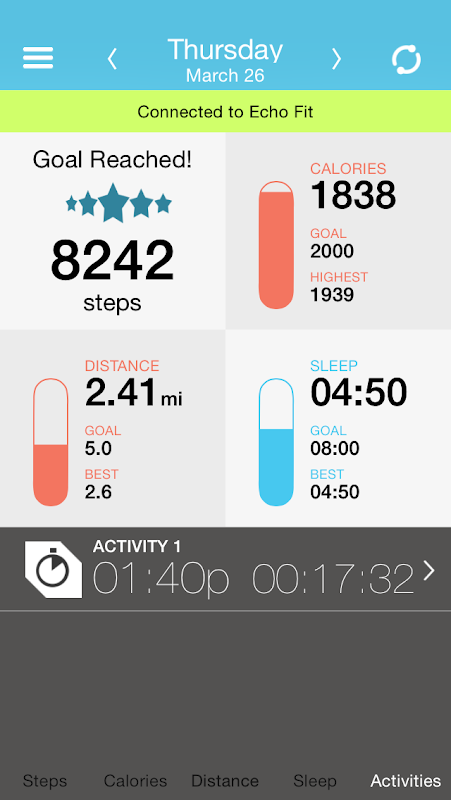 -Customize, Sync, and View your daily Steps, Calories, Distance and Sleep information from your Echo Fit.