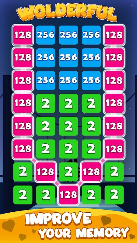🎮 滑动并连接八个方向(上、下、左、右或对角线)的相同数字方块,即可匹配数字。