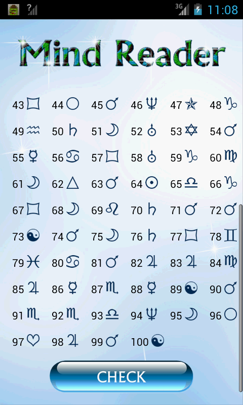 Concentrate on the symbol and when you have it clearly in your mind click on the Check Button and it will show you the symbol you are thinking of....