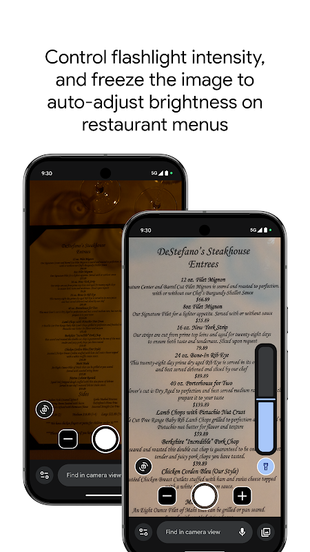 使用相机可放大小号文字,查看物体详细信息,或拉进查看远处的文字,例如路标或餐厅服务台后方的菜单。在拍摄照片之前或之后搜索字词,以便在菜单、发车时刻表或任何包含文字的物品上找到所需信息。应用视觉效果功能可让低对比度文字更加清晰可辨。在光线较差的环境中,系统会自动调节亮度。您还能拍摄照片,并按需放大照片。