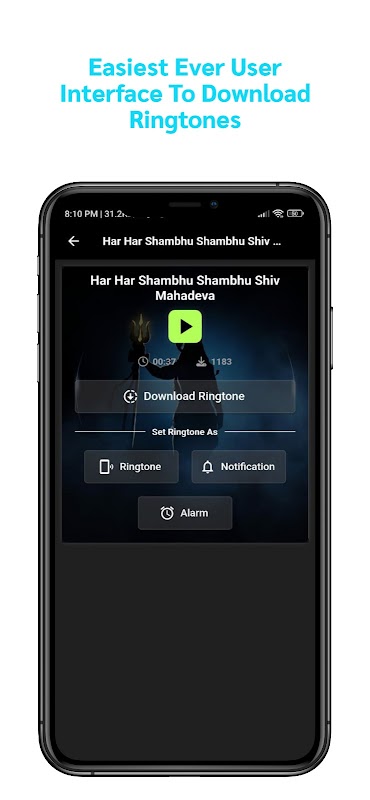 我们总是为 Mahadev 铃声应用程序选择多样性、独特性和乐趣的高质量铃声,特别是它们都是免费的。您可以通过单击轻松下载我们应用程序中显示的铃声,您可以轻松地将其设置为来电铃声、通知铃声和闹钟铃声。