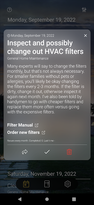 MaintAid让您的家庭维护任务的乐趣,并通过跟踪你需要做什么,当你需要做到这一点,你应该怎么做容易。它存储所有手册和产品说明和时间表的任务给你。