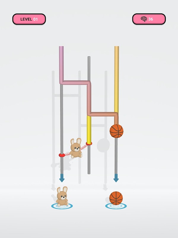 Draw the one and only line between the iron pipes than will make all the objects on top, match the bottoms objets !