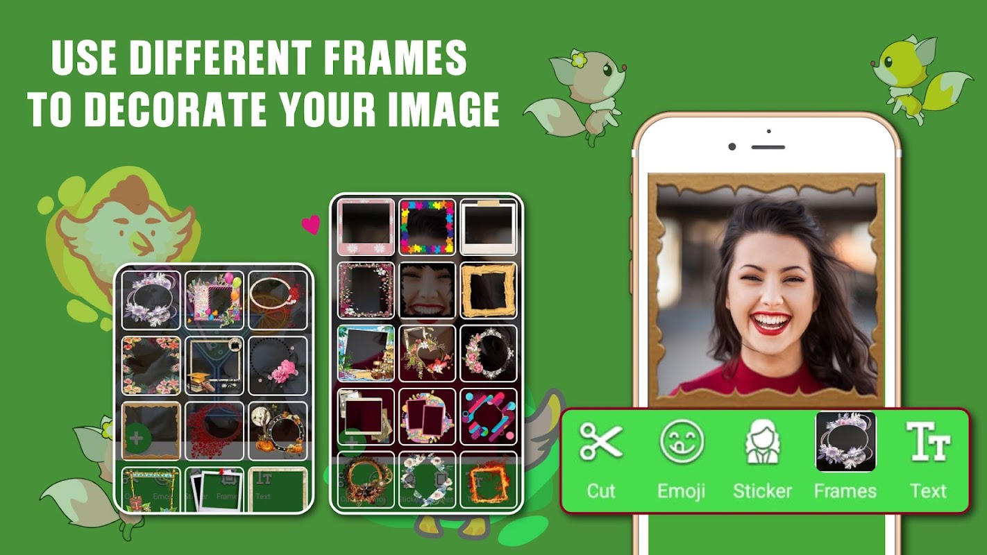 您有许多不同类别的框架,将这些框架应用到贴纸上,并在这些表情符号制作应用程序中创建更具吸引力的贴纸。