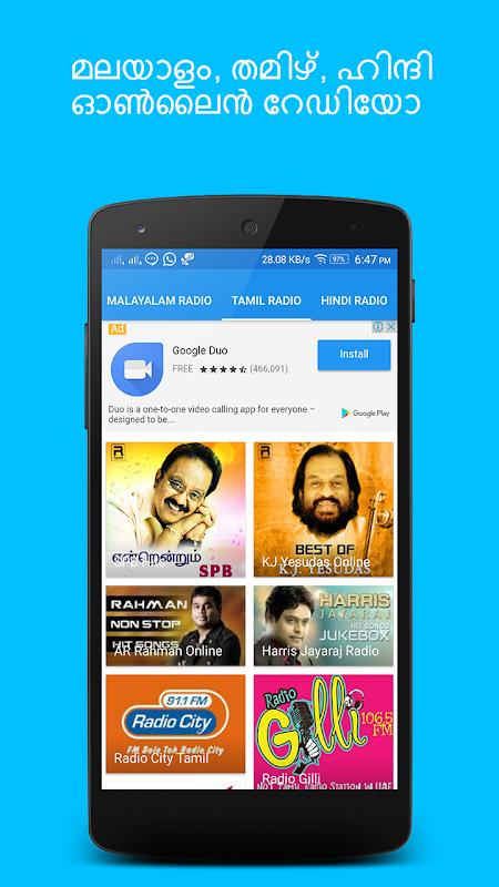我们的在线收音机及视频采集包括马拉雅拉姆语,印地文,泰米尔语和英语的内容,你可以听几百首歌曲,并显示在你喜欢的语言。