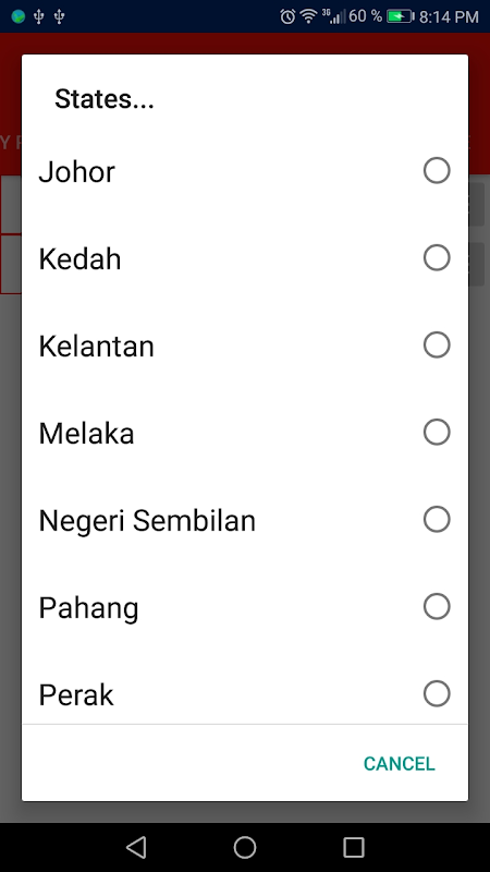 柔佛,吉打,吉兰丹,联邦直辖区吉隆坡,纳闽,马六甲,森美兰,彭亨州,联邦直辖区太子灵再也,玻璃市,槟城,霹雳,沙巴,雪兰莪州,砂拉越,登嘉楼。