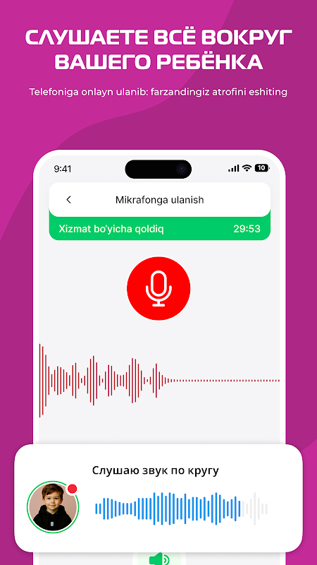 地理围栏 sozlamalari:xaritada maktab、uy yoki o'yin maydonchasi kabi xavfsiz zonalarni yaratish qobiliyati。琼脂 Bola Belgilangan zonadan tashqariga chiqsa、ota-onalar darhol xabardor qilinadi。