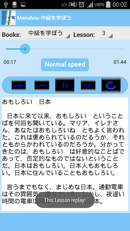 Manabou- 中級 を 学 ぼ う initial version of N3 Listenning practice. If the application is a good review, we will further update the next version includes Try N3 and 中級 へ 行 こ う to serve you better.