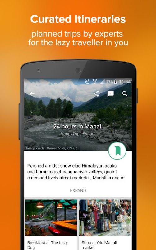 • PLAN USING BOOKMARKS: Plan using bookmarks in Manali Travel Guide app. Select your favorite hotels, restaurants, places to visit & sightseeing options in Manali travel guide & access content offline when in Manali.