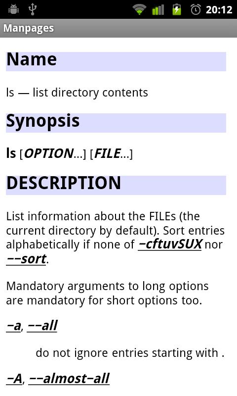 Read GNU/Linux manual pages from anywhere, anytime on your Android device!