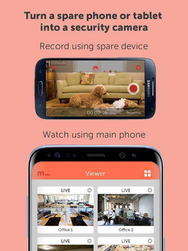 只需在您的备用设备上安装Manything,选择“相机”模式并按record。然后将Manything下载到您随身携带的主手机或平板电脑上,然后选择“查看器”。就是这么简单,现在您可以在任何地方观看相机!