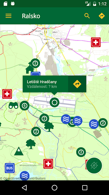 映射应用程序,供游人Ralsko PLA和BRDY。