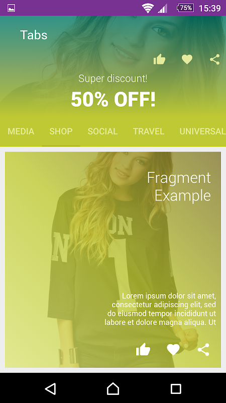 - Tabs - Five themes of tabs, and five new fragments, ready to use.