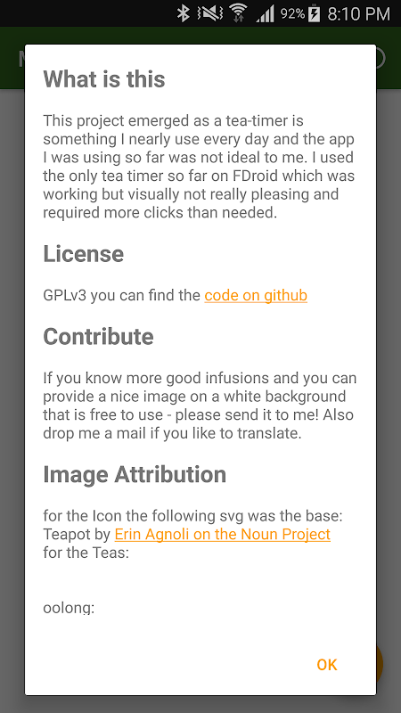 the app is FOSS - you can find the source-code here: https://github.com/ligi/MaterialTeaTimer