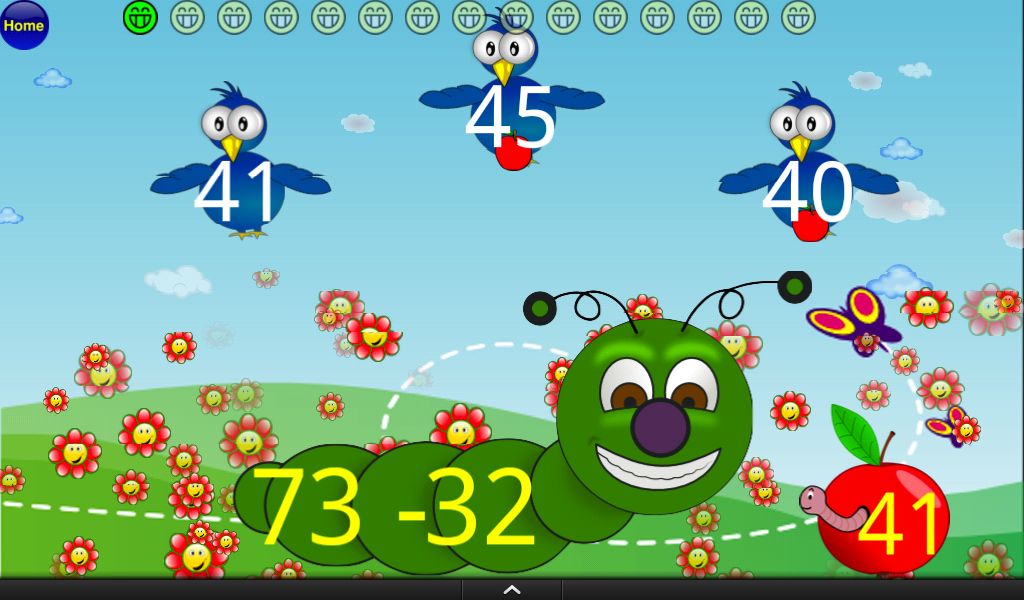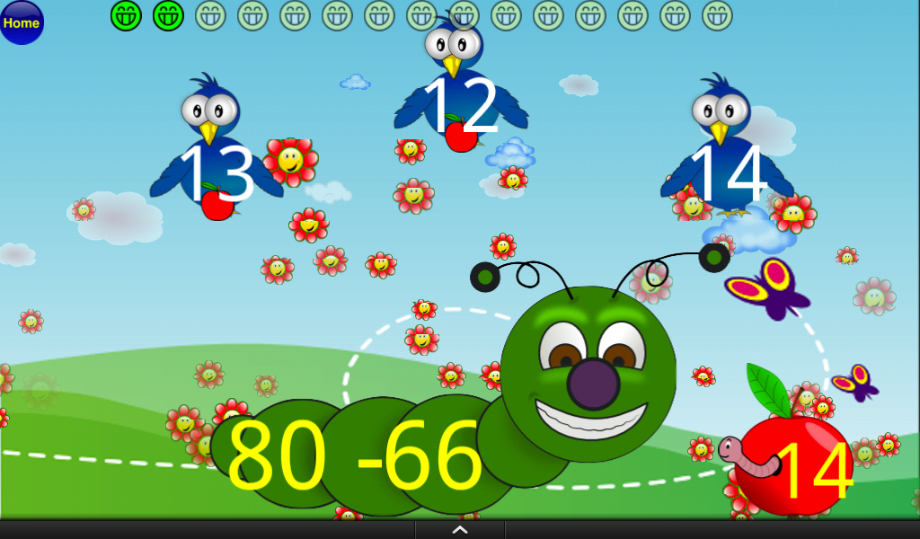 Within each category, you can choose five levels, starting with numbers from one to five, and advancing to double digits. Each level has fifteen questions.