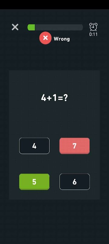 The game contains an unlimited number of math tests.