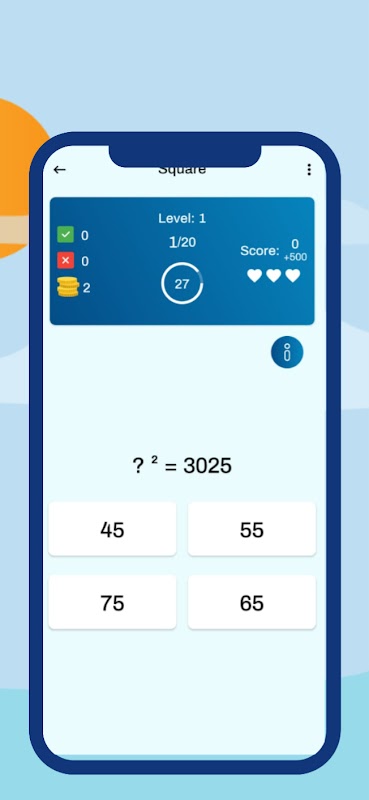 Unique random math quizzes/puzzles will be presented to you depending upon difficulty level of chapter. You can flip or change one question per game Math Quiz 2022.