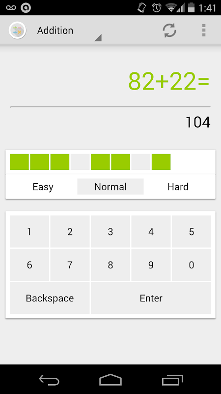 练习解答数学方程式,以保持您的数学技能敏锐。这款数学问答游戏允许您通过解决三个游戏级别的数学方程式来练习加法、减法、乘法和除法:简单、正常和困难。