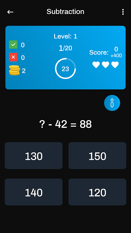 This math game will suit both children and adults. Best maths practice game to train your brain. Each set of exercises shows a score after completion.