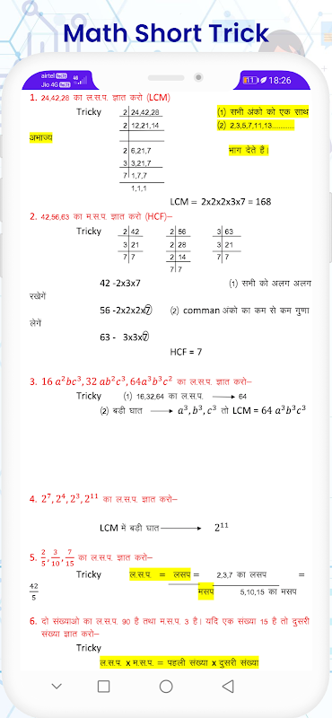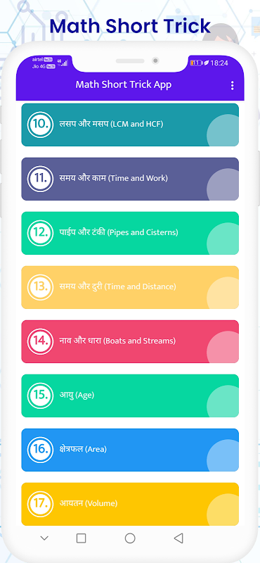 Math Short Trick App 2025 章节应用程序可帮助您轻松练习章节数学问题及其解决方案。在这个应用程序中有非常简短的技巧答案。明智的章节你可以练习数学问题。这个数学短技巧应用程序 2025 对于竞争性考试非常有帮助,例如:SSC CGL、ssc chsl、mts、铁路、NTPC、警察、银行、JSSC、BSSC、SSC GD 等。它对于州考试也非常有帮助,例如:北方邦、比哈尔邦、贾坎德邦、中央邦、拉贾斯坦邦、哈里亚纳邦等。逐章练习这些重要的数学问题,以获得更好的成绩数学部分的考试。
