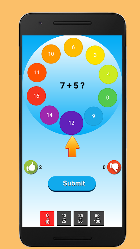 When quiz comes up, you need to move the number wheel with your finger and point the correct answer against arrow. To verify your answe, click on submit button.