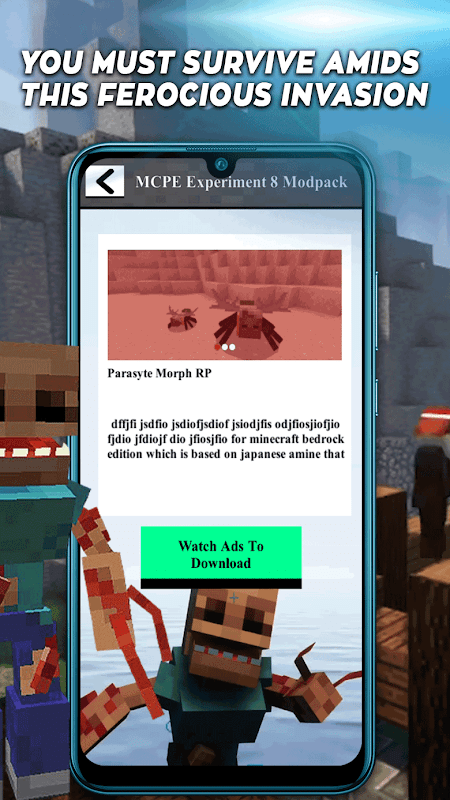 当实验寄生虫席卷世界时,拯救自己免受 mcpe 的可怕和意想不到的入侵。曾几何时,一次科学实验出了问题,导致变异生物在各个角落游荡。现在,你必须在这场凶猛的入侵中生存下来。曾经平静祥和的世界现在变成了实验寄生虫的战场。这些生物是反常基因实验的结果,正在迅速传播并改变一切。村庄被摧毁,森林里充满了可怕的生物,玩家必须反击才能生存。
