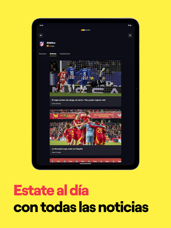 MD Score 是 Mundo Deportivo 推出的新结果应用程序,专为您实时享受足球而设计。有了 MD 分数,您将能够: