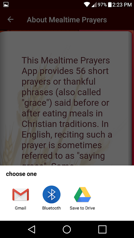这个应用程序提供了 56 个简短的祈祷或感谢短语(也称为“恩典”)