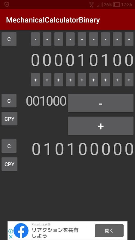我将机械计算器复制为应用程序,并尝试将其用于二进制数字。