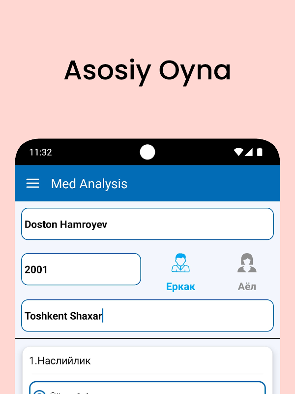Kerakli bo'limlarni tanlash orqali o'zingiz uchun tashxis oling。