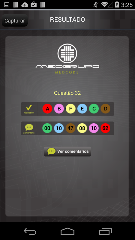 Para utilizar o leitor, posicione o aparelho sobre a questão desejada e o gabarito da questão será exibido na tela do aparelho.