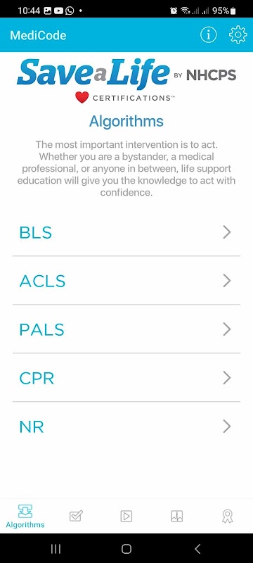 Save a Life Certifications by National Health Care Provider Solutions (NHCPS) 是在线认证和再认证课程的主要提供商,我们相信通过提供卓越的教育和资源可以取得进步。 NHCPS 拯救生命编制了一份重要的基本生命支持 (BLS)、高级心脏生命支持 (ACLS)、儿科高级生命支持 (PALS)、新生儿复苏 (NR) 以及心肺复苏 (CPR) 和急救算法的清单,所有这些只需用手指触摸即可查看和导航。