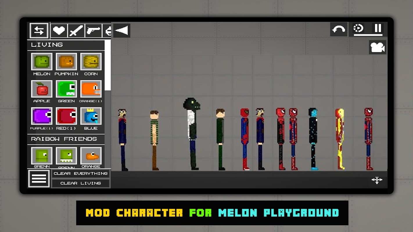Melon Mod Character Playground 是一个非官方的应用程序。该应用程序有助于下载和安装 Melon Playground 游戏的模组,这不是游戏,而是带有说明的附加组件!如果您认为存在不属于“合理使用”规则的商标侵权行为,请通过电子邮件与我们联系。