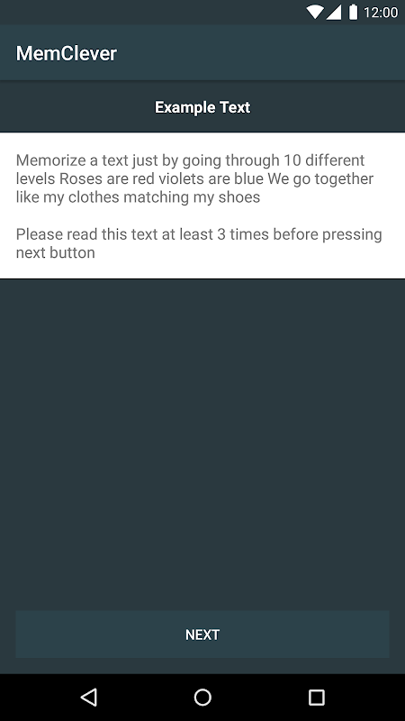 MemClever helps you in memorizing a text by walking you through 10 levels where certain parts of the text are veiled.