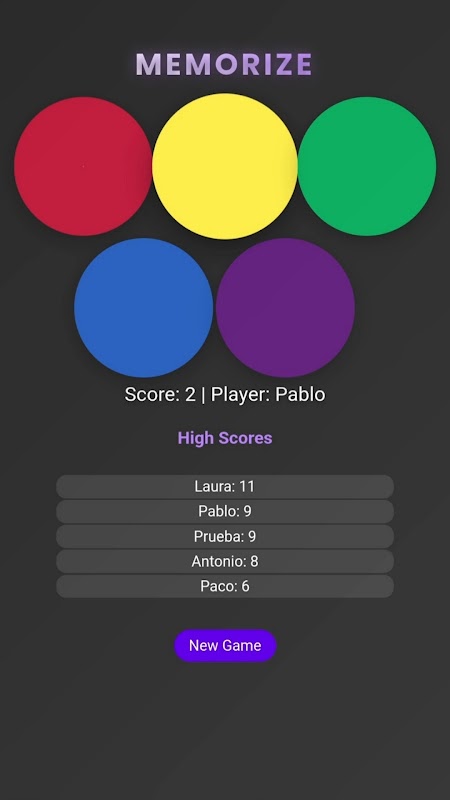 通过记忆重温西蒙等经典游戏的激动!这款令人上瘾的记忆游戏挑战你重复带有独特声音的鲜艳颜色序列。凭借现代而优雅的设计,记忆适合所有年龄段,从儿童到成人。训练你的大脑,在排行榜上竞争,享受无尽乐趣!