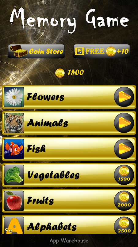 This Memory Game contains Rewarded Ads that helps you to earn more coins by simply viewing it. Earn more coins to unlock next category to enjoy solving the puzzle. You can also purchase the coins from Coin Store in the memory game. This game is free to download and enjoy.