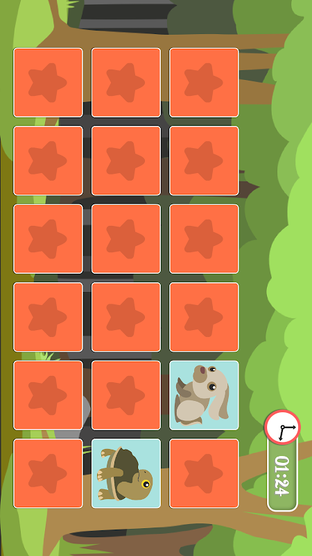Challenge your brain to match hidden pairs by turning over two cards at a time. Try to remember where each animal is placed on the board and match it with the same card.