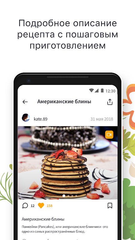 Тут вы сможете искать лучшие полезные блюда, что можно приготовить на завтрак, обед и ужин, добавлять их в избранное, чтобы не потерять, а также делиться своими рецептами с другими пользователями приложения. Вам доступны ежедневные и праздничные, новогодние и для похудения, ПП рецепты (правильное питание). Чтобы найти, что готовить, вам нужно: