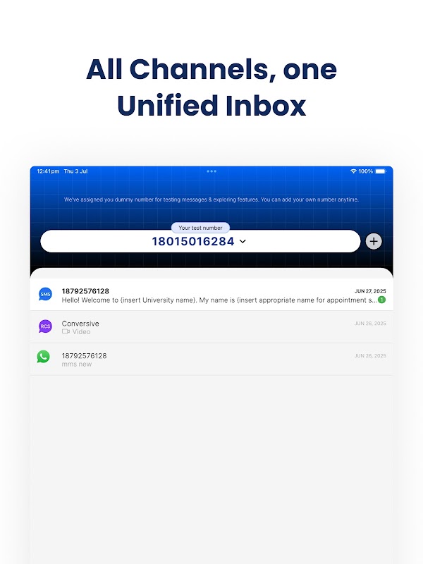 Conversive Simulator 是一款安全的沙盒式行動應用,旨在讓您預覽簡訊、彩信、WhatsApp 和 RCS 上的即時對話,無需生產寄件者 ID 或企業號碼。