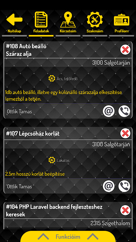 A MesterHívóba rögzített konkrét probléma/feladat azaz megbízás megjelenik a szakembereknél földrajzi elhelyezkedés és szakmaiság szerint szűrve.