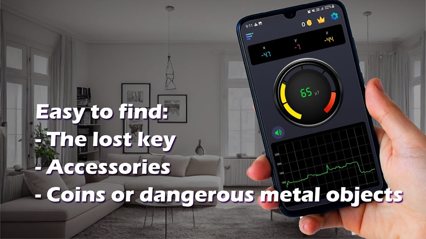 金属探测器应用程序利用智能手机的内置磁力计来检测附近是否存在金属物体,将您的手机变成强大的金属搜寻工具。