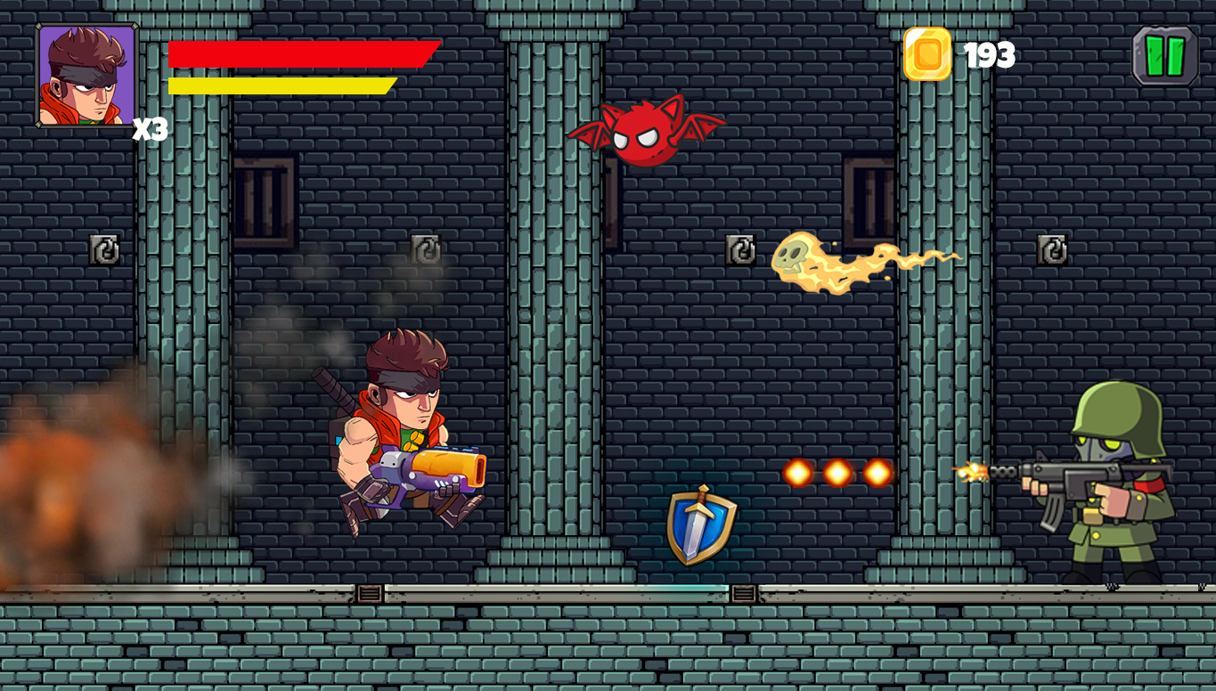 立即下载并帮助超级士兵克服障碍,帮助世界摆脱外星世界大战!并在惊人的金属英雄射击游戏世界中以自己的方式收集所有硬币。