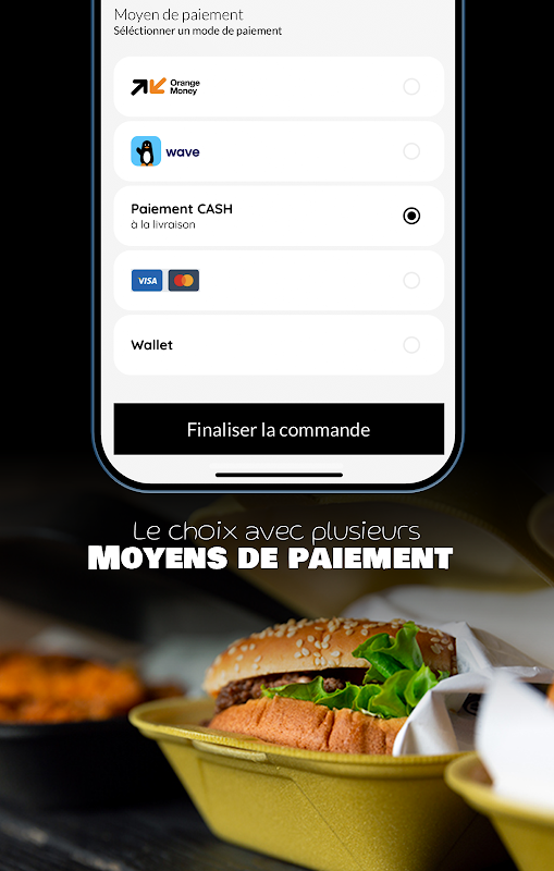 Commandez quand vous voulez, payez avec n'importe quel moyen de paiement ( Wave , Orange Money, Carte bancaire, Cash à la livraison, Wallet ) avec un service de livraison fonctionnel 24h/7.
