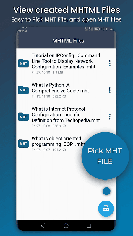 Mht creator 或 Mhtml 文件查看器是一个免费的应用程序,通过它您可以轻松地以 mht 格式共享网页,也可以将网页转换为 pdf 并直接在任何社交媒体上共享。 MHT 文件查看器是阅读网页的最佳工具以及为离线阅读而保存的文章。 Mhtml 阅读器和 Mht 查看器是一个免费工具,您可以通过它阅读和创建 Mht 文件,同时如果您愿意,还可以在任何社交媒体上共享它。 Mhtml 查看器或 Mht 查看器在您旅行且没有互联网时很有用,然后您可以通过 Mht 查看器阅读已保存的 Mht 文件。