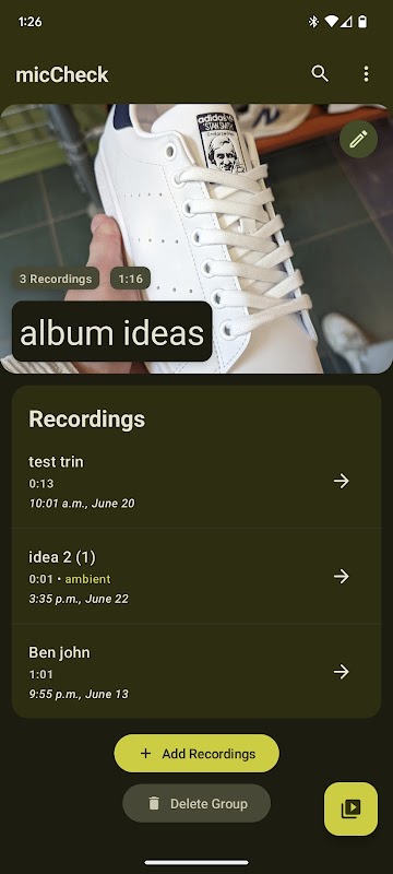 • 专辑之类的群组📀 - 以最适合音频的方式将您的录音分组到课堂讲座、访谈、即兴演奏,甚至是完整的概念专辑中。