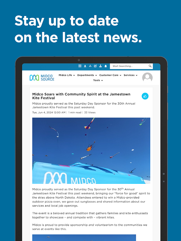 Midco 的 Source 移动应用程序使我们的团队成员能够随时随地保持联系。 Source 将每个人与他们成功所需的故事、知识和应用联系起来,无论他们在哪里工作。
