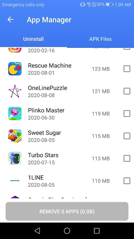 Manage device storage, providing you with apps and APK files that you no longer need to use